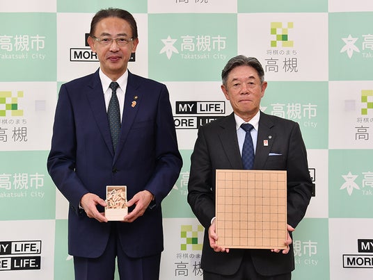 同社は、LPガスを中心とした総合エネルギー事業など幅広い分野で事業展開するとともに、文化・スポーツ活動を行う団体を支援する社会貢献活動を積極的に実施しています。令和5年2月には、関西将棋会館建設支援のため、企業版ふるさと納税制度を活用し、本市へ1000万円の寄附を行い、その功績として紺綬褒章を受章。今回、同社から「将棋のまち高槻」の子どもたちに将棋に触れ合う機会を増やしてもらいたいと、将棋盤や本市産の木材で製造された将棋駒61セットの寄贈を受けました。