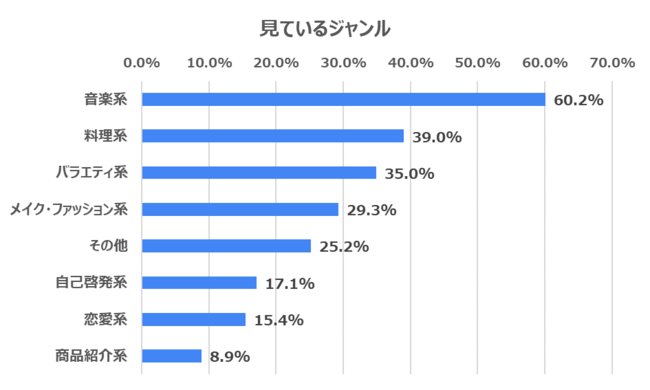 「よく見ている」「見ている」と回答した方にどのジャンルのYouTubeを見ているのか聞いてみました。