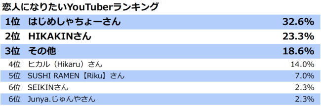 ■恋人になりたいYouTuber1位ははじめしゃちょーさん