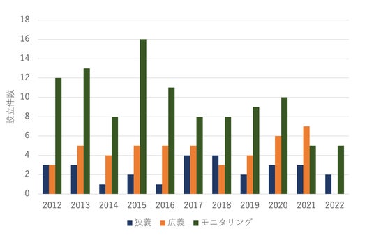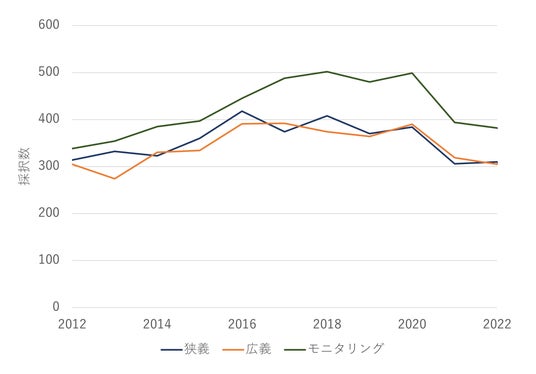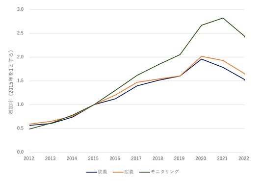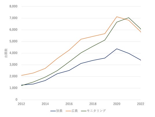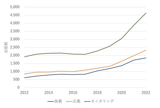 図3:2012年以降の狭義、広義、モニタリング領域におけるスタートアップの設立件数推移