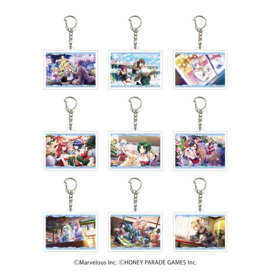 アクリルスタンドにはアクリルキーホルダーと同じく、“メモリー”で登場したドルフィンたちのワンシーンを描きました。縦横最大15cmとビッグサイズでイラストを堪能できるので、ゲームと同じように集めたら隅々までじっくり鑑賞してみてください!