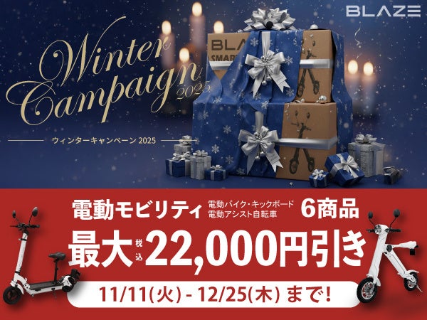 株式会社ブレイズ(愛知県名古屋市、代表取締役:市川秀幸、以下ブレイズ)は、2025年11月11日(火)~12月25日(木)の期間限定で、2輪電動モビリティを対象とした「電動モビリティ ウィンターキャンペーン」を実施いたします。
