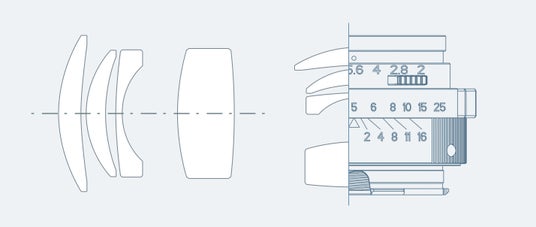 光学設計には、張り合わせのない4群4枚(4枚玉)構成を採用。オリジナルレンズの設計思想を忠実に踏襲しています。絞り開放では、わずかな滲みを伴った柔らかなボケ味を、絞り込むことで、輪郭の立ったシャープな描写を楽しむことができ、絞り操作による描写変化そのものを味わえるレンズとなっています。また外観面でも、無骨で存在感のある鏡筒デザインや、オリジナルの特徴の一つである絞りリングの操作レバー形状まで丁寧に再現されています。