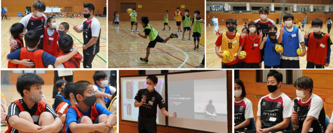 プログラムでは、ボールに親しみながら選手の遠投やスピード感あふれるシュートを見本に練習を行い、アナリストによる解説のもとITを使ったシュートの分析・改善方法を学びました。また、選手を交えてのミニゲームでは、参加者同士の交流とともに白熱した試合が展開されました。最後は、選手、コーチ、アナリスト、マネージャーとの対話の時間を設け、小学生時代の夢、今の仕事を選んだ理由、苦手を克服するための工夫などについて質問が飛び交いました。参加者からは「初めてのハンドボールで試合までやるのは不安だったけれど、やってみたらシュートを決めることができてとても嬉しかった」「選手じゃなくてもスポーツに関わる仕事があると知ってびっくりした」「プロでも迷うことがあるけれど自分に自信を持って好きな事をやるのがよいと言われ勇気がもらえた」といった感想や、保護者からは「ハンドボール体験はもちろん、ハンドボールに携わる仕事を知ることでサポートする方もいてチームがあるのだと知ることができ、喜んでいました」といった声が聞かれました。