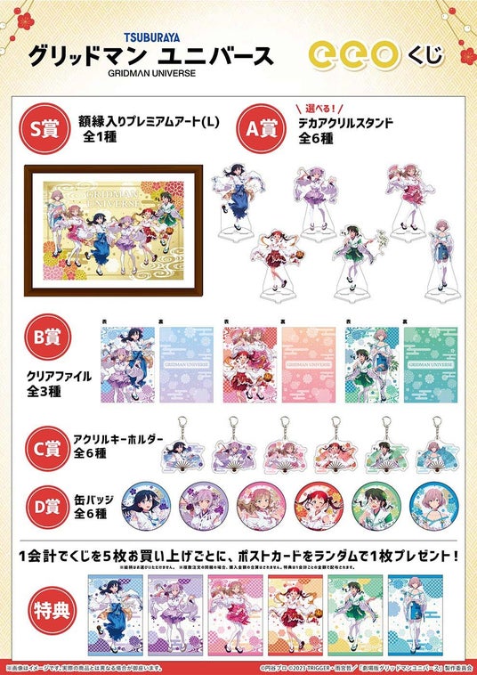 人気アニメーター・けろりら氏の描き下ろしイラストを使った豪華景品が勢ぞろいの劇場版『グリッドマンユニバース』の「eeoくじ」。