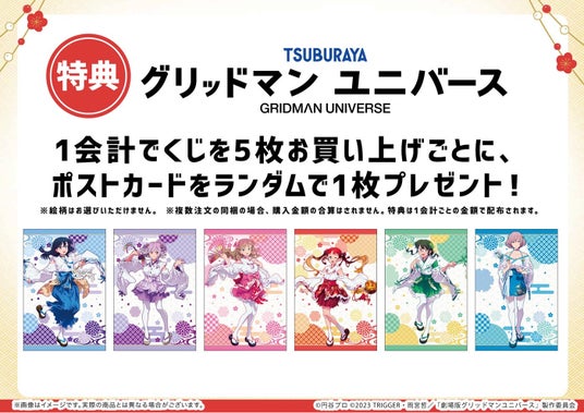 劇場版『グリッドマンユニバース』の「eeoくじ」を1会計で5枚お買い上げごとに、ポストカード(全6種)をランダムで1枚プレゼントします。