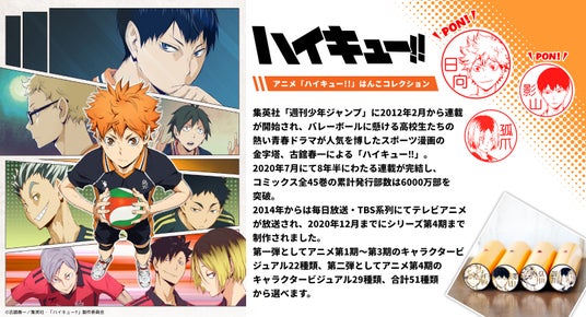 「ハイキュー!!」ファンにはたまらない「アニメ『ハイキュー!!』はんこコレクション」。自分の好きなキャラクターがポンと押せるハンコは、用がないときでもつい連打したくなることでしょう。