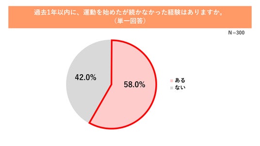 さらに深刻なのは、運動不足が単なる身体的な課題に留まらず、深刻な心理的ダメージを与えている点です。調査の結果、過去1年以内に運動を始めて「続かなかった」経験がある人は58.0%にのぼることが明らかになりました(図5参照)。