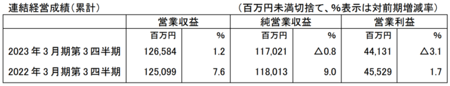 ■2023年3月期第3四半期の連結業績(2022年4月1日~2022年12月31日)