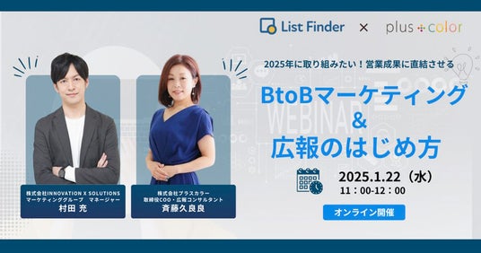 株式会社イノベーション(東証グロース 証券コード3970)のグループ会社である、株式会社Innovation X Solutions(本社:東京都渋谷区、代表取締役社長:歐陽 聖司、以下「Innovation X Solutions」)は、2025年1月22日(水)に「2025年に取り組みたい!営業成果に直結させるBtoBマーケティング & 広報のはじめ方」をテーマとしたセミナーを株式会社プラスカラーと共催で開催します。