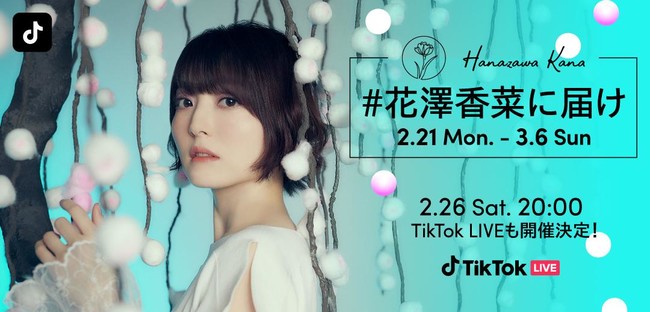 ショートムービープラットフォーム「TikTok(ティックトック)」は、2022年2月21日(月)~ 3月6日(日)の期間、人気声優の花澤香菜さんとコラボしたハッシュタグチャレンジ「#花澤香菜に届け」を開催し、2月26日(土)20時にはTikTok LIVEを行います。