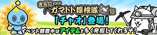 イベント期間中、「ガマトト探検隊」にコラボキャラクターの「チャオ」が登場し、獲得アイテム量がアップいたします。