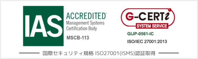 国際セキュリティ規格 ISO27001認証取得済