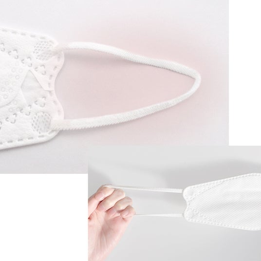 独自のダイヤモンド形状(3段形状)が口元に広い空間を作り出し、口紅やメイクが付きにくいほか、従来の不織布マスクよりも息がしやすい形状となっております。