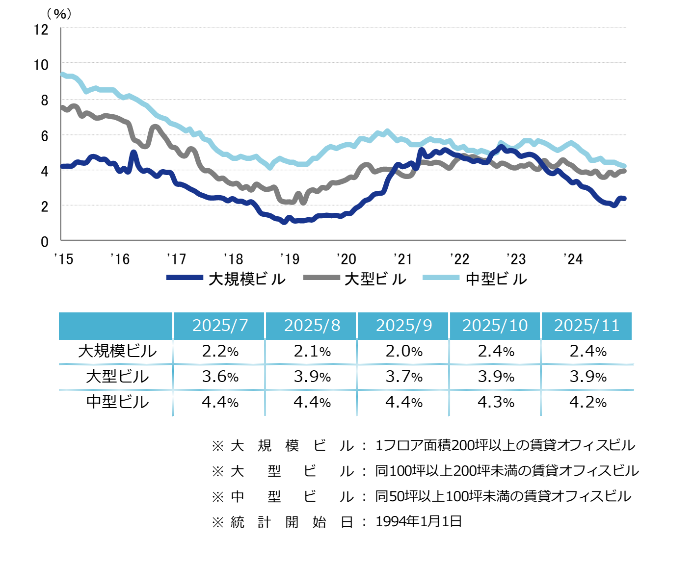 空室率 2ヵ月連続で小幅な上昇 優良な既存ビルで品薄感が強い状況