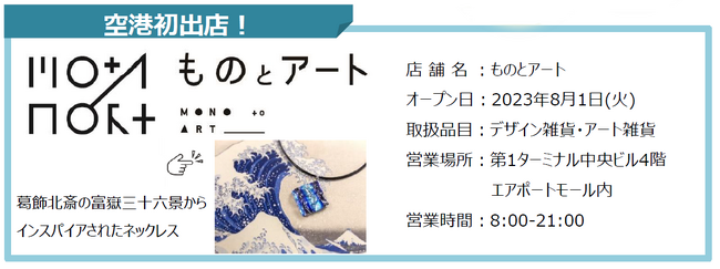 2023年8 月1 日( 火) 、第1 ターミナル中央ビル4 階エアポートモール内にデザイン雑貨・アート雑貨を取り扱う「ものとアート」がオープンいたします。