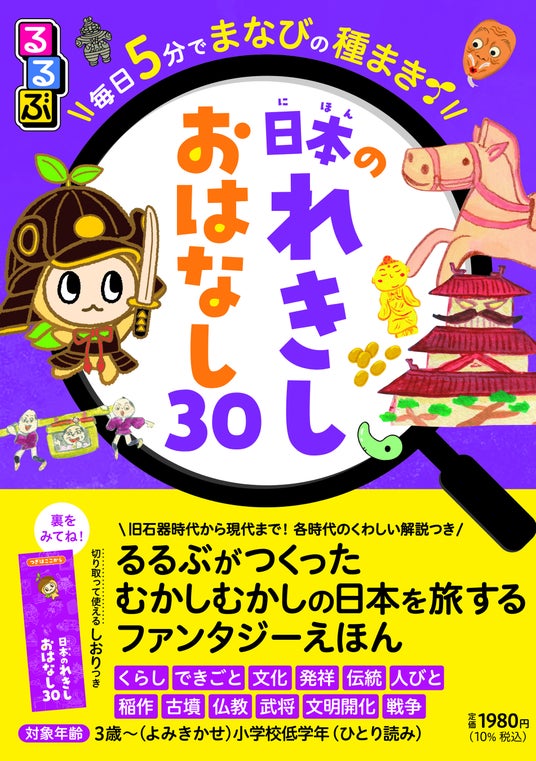 JTBグループで旅行・ライフスタイル情報を提供する株式会社JTBパブリッシング(東京都江東区、代表取締役 社長執行役員:盛崎宏行)は、『るるぶ 毎日5分でまなびの種まき 日本のれきし おはなし30』を2026年3月23日(月)に発売いたします。読み聞かせするなら3歳から。ひとり読みするなら小学校低学年から。切り取って使える便利なしおりもついていて進級祝いやプレゼントにも最適です!