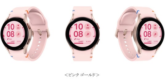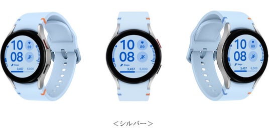 「Galaxy Watch FE」のサイズは40mmで、Galaxy Watchシリーズの象徴的なデザインをベースに新鮮なスタイルと操作感を提供します。カラーは、ブラック、ピンク ゴールド、シルバーの3色展開で、新デザインのWatch Band※3には特徴的なブルーとオレンジのステッチが施されており、どのようなスタイルにも合わせられる高いデザイン性が備わっています。