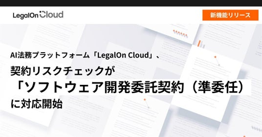 株式会社LegalOn Technologies(本社:東京都渋谷区 代表取締役 執行役員・CEO:角田 望)が提供する、AI法務プラットフォーム「LegalOn Cloud」(https://www.legalon-cloud.com/)にて、契約リスクチェック機能が「ソフトウェア開発委託契約(準委任)」に対応開始しました。これにより、ソフトウェア開発委託の契約の審査にかかる労力を軽減します。