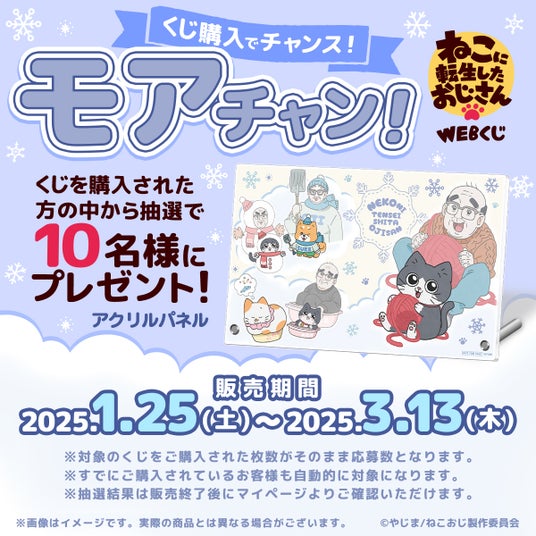 2025年1月25日より、「ねこに転生したおじさんWEBくじ」の販売を開始いたしました。