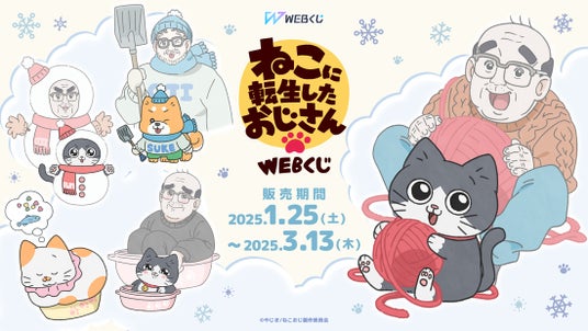 Xで大人気連載中&TVアニメも好評放送中の『ねこに転生したおじさん』より描き下ろしイラストを使用したグッズが「WEBくじ出張所!」として全国の販売店舗と、オンラインくじサイト「WEBくじ」にて販売されます。
