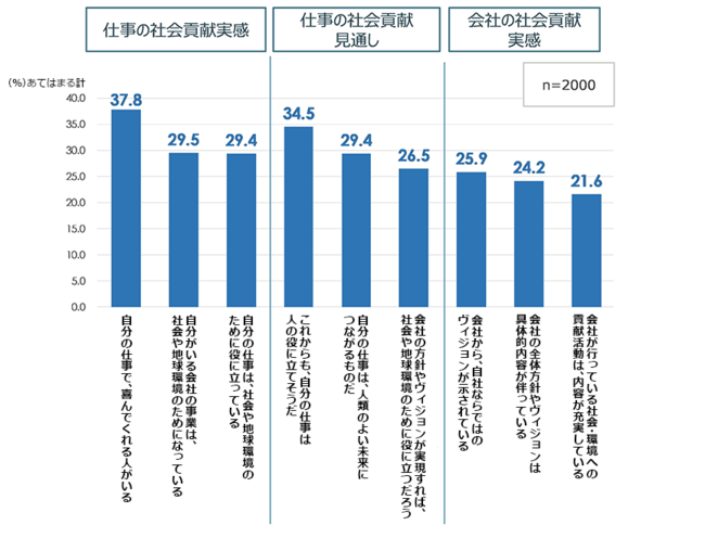 今の仕事や会社の活動の社会貢献実感である「ソーシャル・レリバンス」が強い