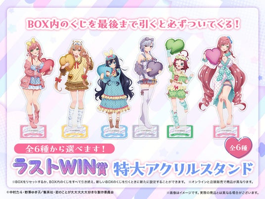 また、店頭限定ラストWIN賞では描き下ろしの彼女たちを全員飾れるアクリルジオラマをラインナップ。