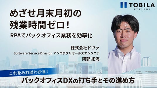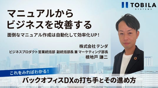 株式会社イノベーション(東証グロース 証券コード3970)のグループ会社である、株式会社Innovation & Co(本社:東京都渋谷区、代表取締役社長:齊藤和馬、以下「Innovation & Co」)は、トビラシステムズ株式会社(本社:愛知県名古屋市、代表取締役社長:明田 篤、証券コード:4441、以下「トビラシステムズ」)と共催で、2025年2月5日( 水)に、これをみればわかる!「バックオフィスDXの打ち手とその進め方」を開催することをお知らせいたします。