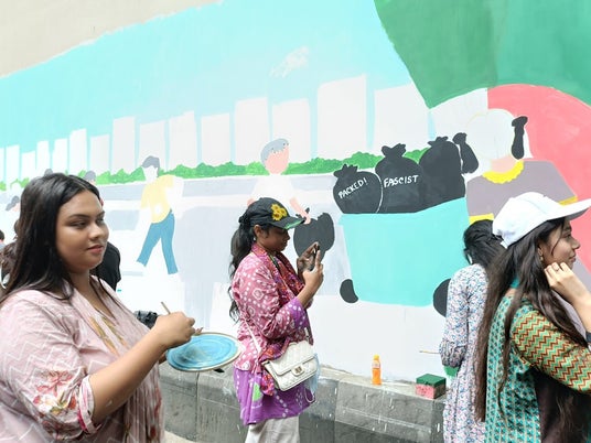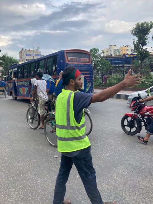 デモ隊と警察等による激しい衝突が続いていたバングラデシュでは、前首相の辞任を受けて暫定政府が発足し、少しずつ未来に向けて歩み始めています。首都ダッカでは、数多くの学生ボランティアたちがSNSを使って組織的に連携しながら、破壊された場所の掃除、警察不在の中での交差点の交通整理、剥がれた道路標識のペンキ塗り、近所の見回り運動、ダッカの街なかの壁に平和へのメッセージや国の未来の絵を描くなど、さまざまなボランティア活動を自主的に行っています。