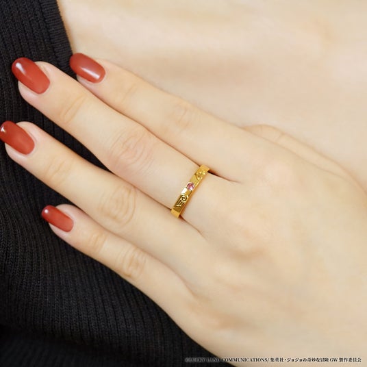 中央にはジョルノをイメージした鮮やかなピンクトルマリンをセッティング。
