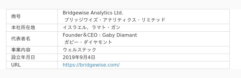 - BridgewiseについてBridgewiseはAIを活用した金融AIインテリジェンス企業です。2019年の設立以降、同社は投資のナレッジギャップを埋め、金融市場情報へのアクセスを民主化することを目的に、全世界の株式とファンドの90%以上を分析しています。同社は50社以上の機関投資家を含め、25種類以上の言語で、15カ国の投資家を支援し、分析件数は1,000万件以上に上ります。Bridgewiseは世界中の金融機関と提携し、投資判断を支援しています。国内では、2023年に株式会社JPX総研と日本市場の情報発信にかかるパートナーシップを締結するなど市場の信頼を高めています。