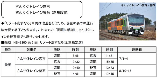 東北夏祭りや花火大会などイベントに向けて、臨時列車を運転します。