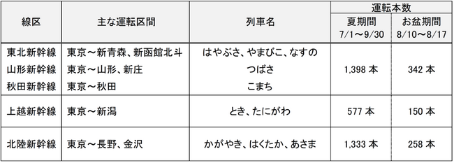 ※東北・山形・秋田新幹線のうち、併結して運転する列車は1本として計上しています。