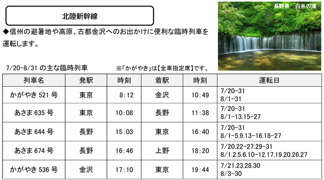 ◆長野・金沢方面へ、「かがやき」・「はくたか」1,010本、「あさま」323本を運転します。