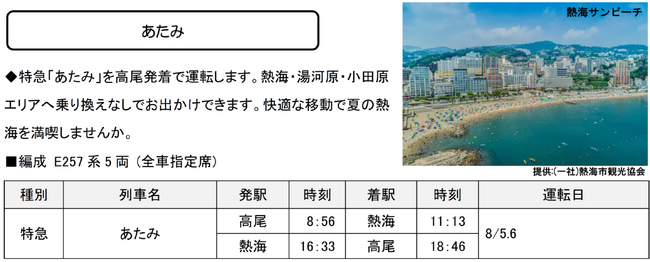夏休みやお盆期間を中心に、各方面に便利な臨時列車を運転します。