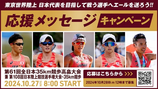 10月27日(日)に 高畠まほろば競歩路 で開催する「第61回全日本35km競歩高畠大会 / 第108回日本陸上競技選手権大会・35km競歩(https://www.jaaf.or.jp/competition/detail/1885/)」に出場する選手に向けた「応援メッセージキャンペーン」を実施いたします。