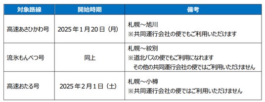 ~高速あさひかわ号・流氷もんべつ号・高速おたる号でサービス開始予定~