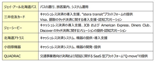 ジェイ・アール北海道バス株式会社(本社:北海道札幌市、代表取締役社長:田畑 正信)、 三井住友カード株式会社(本社:東京都江東区、代表取締役社長:大西 幸彦)、株式会社ジェーシービー(本社:東京都港区、代表取締役兼執行役員社長:二重 孝好)、北海道アトラス株式会社(本社:北海道札幌市、代表取締役社長:川西 哲也)、株式会社小田原機器(本社: 神奈川県小田原市、代表取締役:丸山 明義)、QUADRAC株式会社(本社:東京都港区、代表取締役社長:高田 昌幸)は、ジェイ・アール北海道バスが運行する高速あさひかわ号、流氷もんべつ号、および、高速おたる号で三井住友カードが提供する公共交通機関向けソリューション「stera(ステラ) transit(トランジット)」を 活用したタッチ決済対応のカード(クレジット・デビット・プリペイド)や、カードが設定されたスマートフォン等による乗車サービスを開始することについて、以下の通りお知らせします。