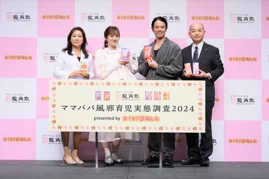 4歳の娘を持ち、第2子妊娠を発表したタレント・菊地亜美は、株式会社龍角散(所在地:東京都千代田区、代表取締役:藤井 隆太)が主催する「ママパパ風邪育児実態調査2024」presented by おくすり飲めたねに出席。幼稚園以下のお子さんを持つ20代から40代の男女600名を対象に実施されたアンケート調査の発表会が、12月9日、東京・KANDA SQUAREにて行われました。