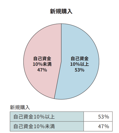 ・ 自己資金拠出割合別では、引き続き、新規購入の5割以上が、金利引き下げ幅が0.05%拡大する「自己資金10%以上」を選択