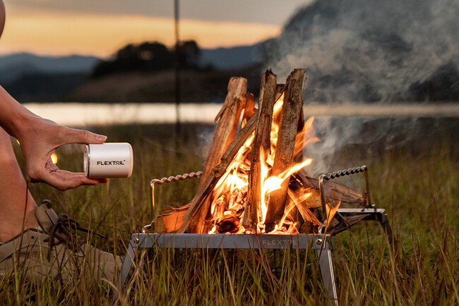 手のひらサイズの本体は重量わずか96g。キャンプや旅行など様々なシーンで活躍します。フックも付いているので吊り下げも自在。