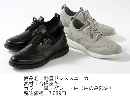 ビジネスもカジュアルも履きやすいデザイン性。より「きちんと感」を演出できるレースアップの「軽量ドレススニーカー」、よりカジュアルにお召いただける「軽量スニーカー」の2種類をご用意しました。