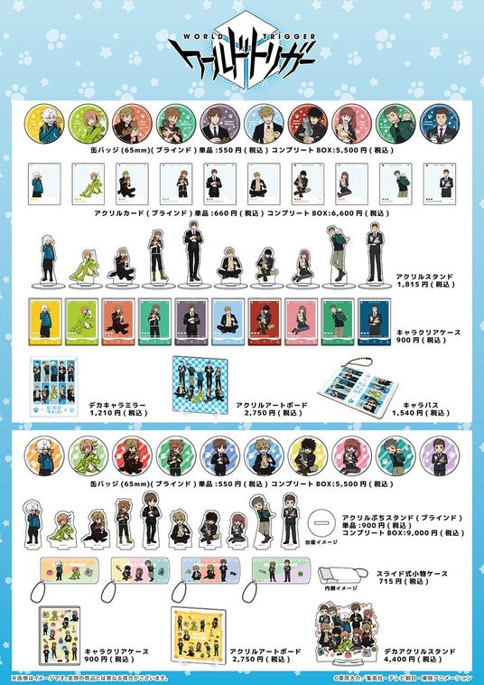 TVアニメ『ワールドトリガー』の新作グッズが発売決定! 本日3月1日(金)から先行販売が通販サイト「eeo Store online」で、3月22日(金)から店頭販売がeeo POP-UP STOREとテレアサショップ(東京駅店・六本木店)でスタートします。