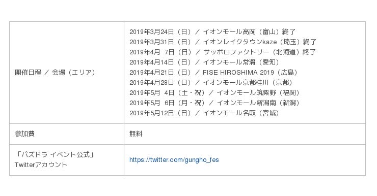 【特設サイト】https://event.gungho.jp/fes/2019/tour/