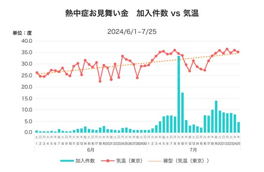 ■即日の保障開始で安心!熱中症対策として真夏日当日の加入件数が増加傾向に