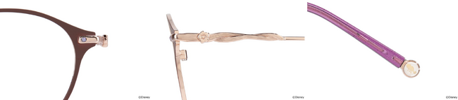 学校や職場でもかけやすい小ぶりなメタルのボストン型で、プリンセスらしいフェミニンなデザイン。サイドには、ラプンツェルの衣装をイメージしたパープルカラーの七宝をのせたリボンのようなデザインがさりげなく光ります。