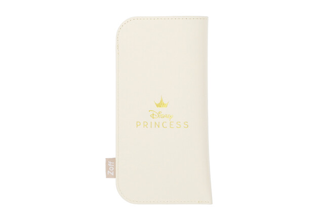 全てのフレームに、共通のオリジナルケースとメガネ拭きが付いてきます。ディズニープリンセスのロゴと各プリンセスのモチーフが箔押しされたケース、各プリンセスのイラストが配されたメガネ拭きのセットです。