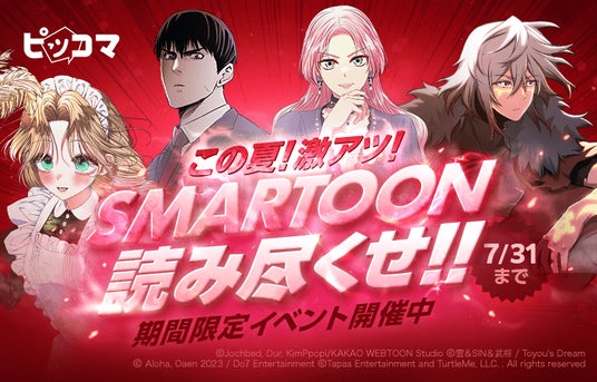 株式会社カカオピッコマ(本社:東京都港区、代表取締役社長:金在龍)が運営する電子マンガ・ノベルサービス「ピッコマ」では、7/17(水)から7/31(水)まで、全ピッコマユーザーを対象に「この夏!激アツ!SMARTOON読み尽くし!」を開催いたします。