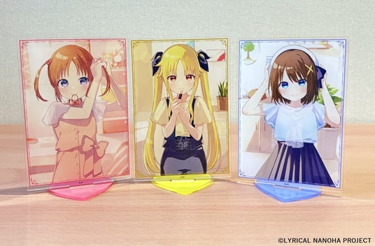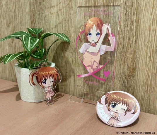 なのはたちが“おめかし中”! ハート型の台座がキュートなアクリルスタンドも登場しました。