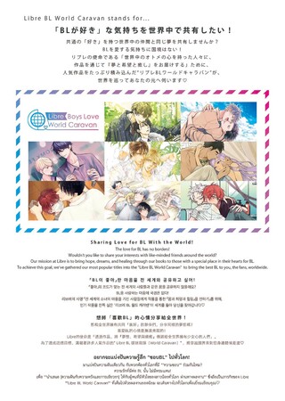 リブレの使命である「世界中のオトメの心を持った人々に、作品を通じて『夢と希望と癒し』をお届けする」ために、人気作品をたっぷり積み込んだ”リブレBLワールドキャラバン”が、世界を巡ってあなたの元へ伺います(ハート)